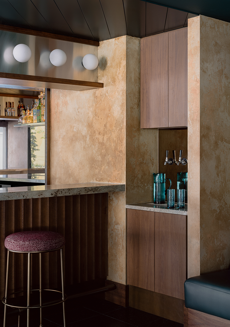 This thoughtfully designed venue offers an array of diverse, personality-rich areas, ensuring each visit is a fresh and exciting experience. The existing concrete raw walls have been artfully transformed with a textured paint by Scanlan & Makers. Along with key design elements and softly coloured integrated lighting, the overall experience is a combination of intimacy and urban connection.