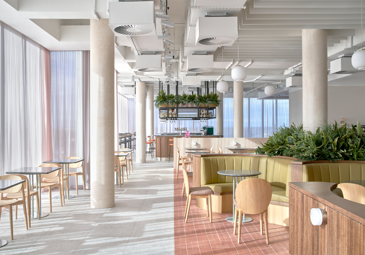 Drawing on the principles of the Memphis design movement, the 150-room hotel, is awash with vivid hues, eye-catching textures and striking geometries. While the design language subtly evolves between the guest rooms, food and beverage spaces and the conference and events spaces, each interior is linked through subtle green accents – a nod to it’s quintessential brand colour.