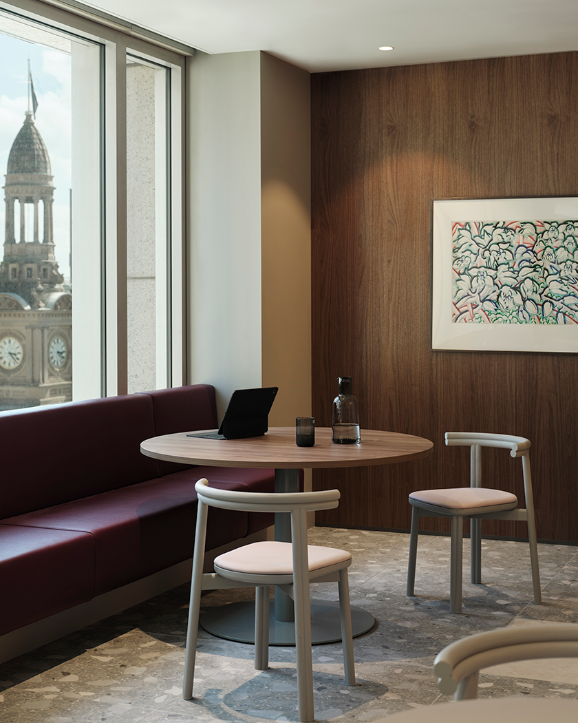 New workplace blends tradition with innovation. Designed by Cornerstone International Solutions, the fit-out supports focus, collaboration and growth, reflecting the firm’s accessible, responsive nature. Spanning two levels of 2 Park Street, the 2300-square-metre space draws on the precision of timepieces as a design narrative, expressed through rhythmic detailing and refined materiality.