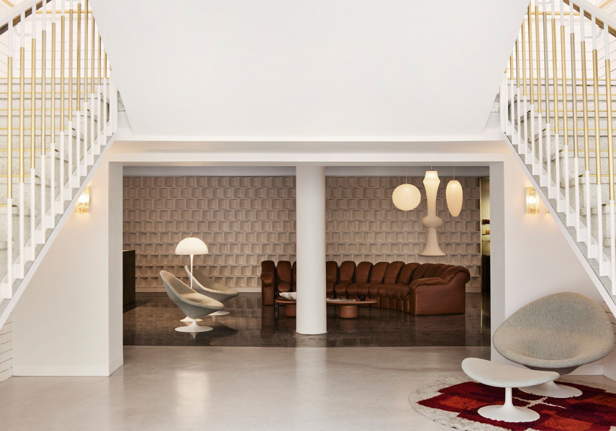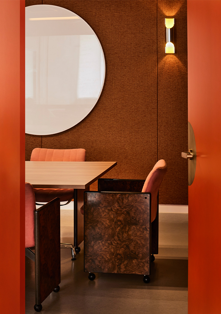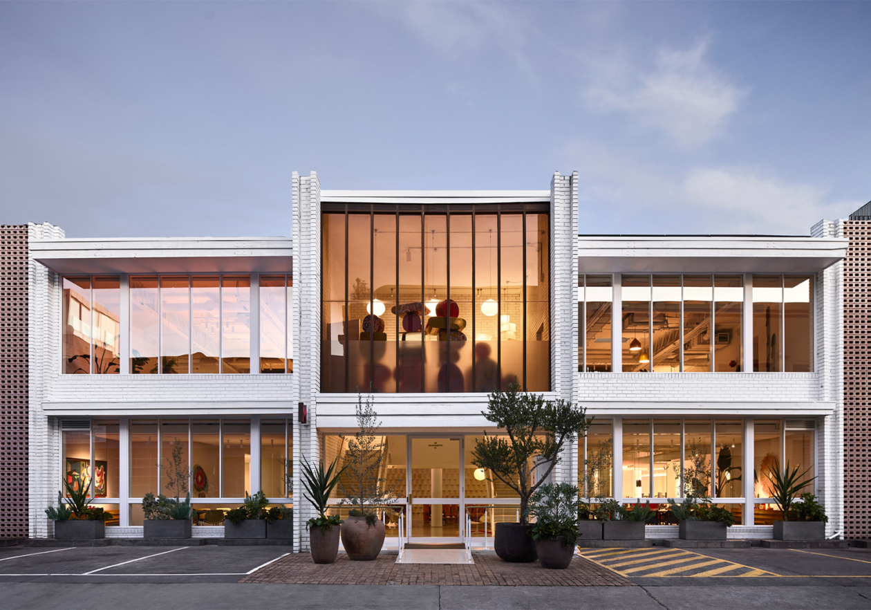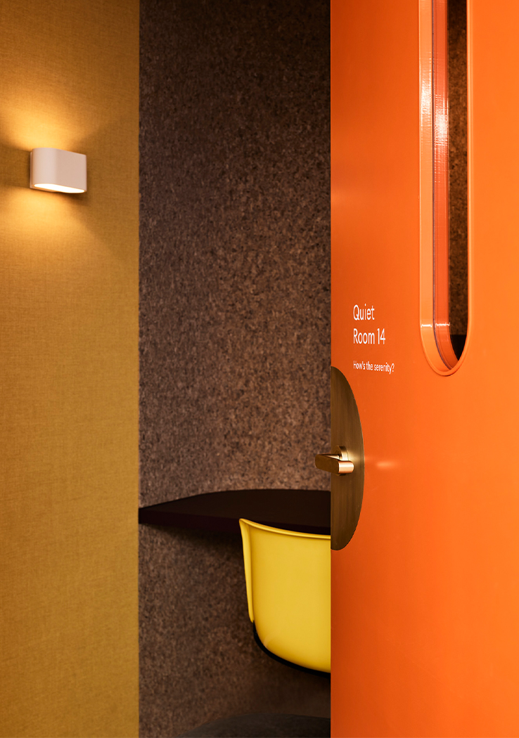 Forming part of a larger campus of buildings, the mid-century warehouse offers an industrial backdrop to the centre’s richly layered interior. The raw building envelope is embraced, while built forms sit as pods nestled below the exposed truss roof. Window seats and workstations brim the perimeter of each work floor, flanked by lounge settings that encourage teams to gather for group tasks. A central spine of meeting, quiet, and wellness rooms offer visual and acoustic privacy, with a series of water points and lockers creating moments of reprieve between. The dexterous planning enables clear sightlines and abundant natural light across the floorplate to enhance connection and wellbeing among staff and visitors.